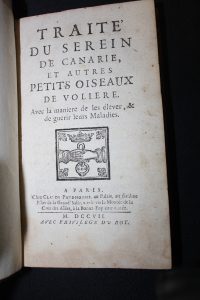 [Hervieux de Chanteloup (attribué à )] Traité des serins de canarie, et d'autres petits oiseaux de volière, avec la manière de les élever et de guérir leurs maladies. relié ensuite: Traité du rossignol (anonyme). Paris, Prudhomme, 1707 ;...