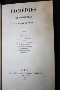 Musset (Alfred De) : Les Comédies et Proverbes.1850, in-8 dos basane violette.
