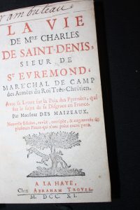 Vie de Charles de Saint-Denis, sieur de Saint-Evremond par Des Maizeaux. La Haye, Tronel, 1711 ; in-12 ; plein veau.