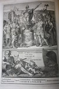 [Victor (Aurelius)] : Historia Romana. Amstelodami & Trajecti Batav., Janssonio-Waesbergios & Jacobum à Pooslsum, 1733, in-4 cuir-de-Russie fauve. Frontispice gravé, 1 planche H.T, nombreuses vignettes g.s.c. in texte. Quelques feuillets brunis,...