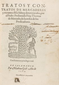 1569. (BRUGALLA). MERCADO, FRAY THOMAS DE: TRATOS Y CONTRATOS DE MERCADERES Y TRATANTES DECIDIDOS Y DETERMINADOS, POR EL PADRE ... En Salamanca: por Mathias Gast, 1569. 8º. 14 h. + 249 h., 13 h. Encuadernado por Brugalla en 1955 en plena piel,...