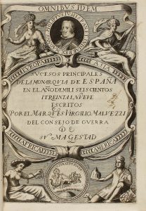 1640. (BRUGALLA). MALVEZZI, MARQUES VIRGILIO: SUCESOS PRINCIPALES DE LA MONARQUIA DE ESPAÑA EN EL AÑO DE MIL I SEISCIENTOS I TREINTA I NUEVE. En colofón, Madrid: Imp. Real, 1640. 8º mayor. 131 fol. Texto enmarcado. Portada grabada al cobre. Enc....