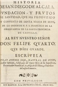 1663. (BRUGALLA). ROJO, ANTONIO: HISTORIA DE SAN DIEGO DE ALCALA. FUNDACION, Y FRUTOS DE SANTIDAD, QUE HA PRODUZIDO SU CONVENTO DE SANTA MARIA DE IESUS, DE LA ORDEN DE N.P.S. FRANCISCO DE LA OBSERVANCIA DE LA SANTA PROVINCIA DE CASTILLA. En Madrid:...