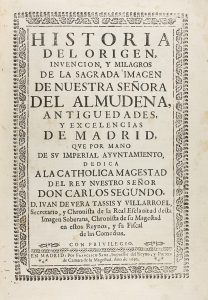 1692. (BRUGALLA-MADRID-ALMUDENA). VERA TASSIS Y VILLARROEL, IVAN: HISTORIA DEL ORIGEN, INVENCION, Y MILAGROS DE LA SAGRADA IMAGEN DE NUESTRA SEÑORA DEL ALMUDENA, ANTIGUEDADES, Y EXCELENCIAS DE MADRID, QUE POR MANO DE SU IMPERIAL AYUNTAMIENTO,...