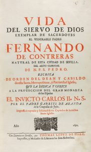 1692. (BRUGALLA-SEVILLA-BIOGRAFIA). ARANDA, GABRIEL DE: VIDA DEL SIERVO DE DIOS EXEMPLAR DE SACERDOTES EL VENERABLE PADRE FERNANDO DE CONTRERAS, NATURAL DE ESTA CIUDAD DE SEVILLA. Sevilla: por Thomas Lopez de Haro, 1692. Folio menor. Frontis con...