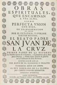 1703. (BRUGALLA-MISTICA). SAN JUAN DE LA CRUZ: OBRAS ESPIRITUALES QUE ENCAMINAN A UNA ALMA A LA MÁS PERFECTA UNIÓN CON DIOS EN TRANSFORMACIÓN DE AMOR. Sevilla: Francisco Leefdael, 1703. Folio. 16 p. + 511 p. Texto a dos columnas. Viñetas,...