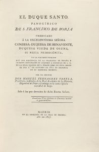 1807. (BRUGALLA-SANT FELIPE NERI). BARCA, CALDERON DE LA: EL DUQUE SANTO. PANEGIRICO DE S. FRANCISCO DE BORJA PREDICADO A LA EXCELENTISIMA SEÑORA CONDESA-DUQUESA DE BENAVENTE, DUQUESA VIUDA DE OSUNA, SU VIUDA DE OSUNA, SU NIETA PRIMOGENITA. Madrid:...