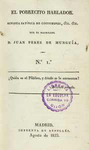 1832. (BRUGALLA). PEREZ DE MUNGUIA, JUAN: EL POBRECITO HABLADOR. REVISTA SATIRICA DE COSTUMBRE. Madrid: Imp. de Repullés, 1832. 8º menor. 14 números de ente 14 y 24 p. c/u. Enc. por Brugalla, en 1955 en plena piel, nervios, hilos, cejas y cortes...