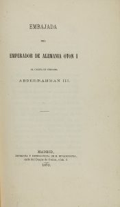 1872. (BRUGALLA). EMBAJADA DEL EMPERADOR DE ALEMANIA OTON I AL CALIFA DE CORDOBA ABDERRAHMAN III. Madrid: Imp. y Est. de M. Rivadeneyra, 1872. 8º menor. 83 p. Leve mancha en las dos últimas hojas. Enc. por Brugalla, en 1944, en plena piel,...