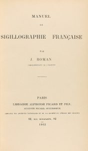 1912. (BRUGALLA). ROMAN, J.: MANUEL DE SIGILLOGRAPHIE FRANÇAISE. Paris: Editions Auguste Picard, 1912. 8º. VII + 401 p. 30 láminas fotográficas de medallas y esfinges y 45 ilustraciobes en el texto. Encuadernado por Brugalla en 1943, en media...