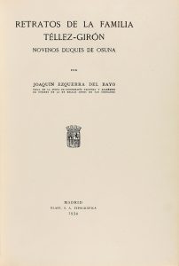 1934. (BRUGALLA). EZQUERRA DEL BAYO, JOAQUIN: RETRATOS DE LA FAMILIA TELLEZ-GIRON NOVENOS DUQUES DE OSUNA. Madrid: Blas Tip., 1934. 4º menor. 62 p., 1 h., LII láms. Enc. por Brugalla, en 1943, en media piel, nervios, puntas, corte superior dorado....