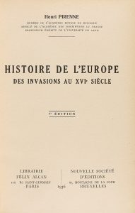 1936. (BRUGALLA-HISTORIA). PIRENNE, HENRI: HISTOIRE DE L´EUROPE DES INVASIONS AU XVI SIECLE. Paris: Alcan; Bruxelles: NSE, 1936. 4º. 487 p. Cortes pintados. Enc. por Brugalla en 1940 en media piel. Nervios, hierros en el lomo.