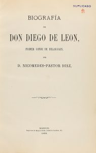 1868. (EJEMPLAR PERTENECIENTE A LA FAMILIA REAL). PASTOR DIAZ, NICOMEDES: BIOGRAFIA DE DON DIEGO DE LEON, PRIMER CONDE DE BELASCOAIN. Madrid: Imp. de Manuel Tello, 1868. 4º menor. XIV + 155 p. 4º menor. Frontis con albúmina montada...