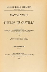 1901. (CHILE-GENEALOGIA). AMUNATEGUI SOLAR, DOMINGO: LA SOCIEDAD CHILENA DEL SIGLO XVIII. MAYORAZGOS Y TITULOS DE CASTILLA. Memoria Historica Presentada a La Universidad de Chile En Cumplimiento del Articulo 22 de La Lei de 9 de Enero De 1879....