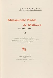 1911. (GENEALOGIA-MALLORCA). AYREFLOR Y SUREDA, RAMIS: ALISTAMIENTO NOBLE DE MALLORCA DEL AÑO 1762. NOTICIAS GENEALOGICAS, HERALDICAS Y BIOGRAFICAS DE LOS INDIVIDUOS Y FAMILIAS CONTINUADOS EN EL MISMO. Palma de Mallorca: Imp. de Amengual y...