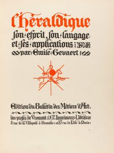 1923. (HERALDICA). GEVAERT, EMILE: L´HERALDIQUE SON ESPRIT, SON LANGUE ET SES APPLICATIONS. Paris: Edition du Bulletin des Metiers d´Art, 1923. Folio. Láminas fotográficas y ilustraciones en el texto. Encuadernado por Arias en media piel con...