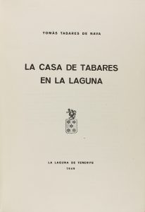 1949. (NOBLEZA-TENERIFE). TABARES DE NAVA, TOMAS: LA CASA DE TABARES EN LA LAGUNA. La Laguna de Tenerife: Tall. Tip. Curbelo, 1949. Folio menor. 169 p., 1 lám. Enc. en tela edit. Edición numerada de 80 ejemplares.