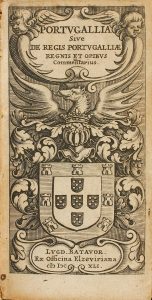 1641. (BRASIL). PORTUGALLIA SIVE DE REGIS PORTUGALLIAE REGIS ET OPIBUS COMMENTARIUS. Lugd. (Leiden, Lugdunum); Batavor (Batavorum): Officina Elzeviriana, 1641. 12º. 460 p., 5 h. Viñetas y capitales. Portada con escudo grabado. Enc. de época en...