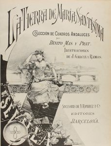 1920 ca. MAS Y PRAT, BENITO: LA TIERRA DE MARIA SANTISIMA. COLECCION DE CUADROS ANDALUCES. Ilustr. de J.Garcia y Ramos. Barcelona: Suc. de N. Ramirez y Cª edit., s.a. Folio menor. 499 p., 4 h. Ilustraciones en texto y 57 láms. grabadas de GARCIA...