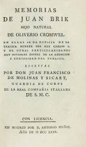 1780. (HISTORIA). MOLINAS Y SICART, JUAN FRANCISCO: MEMORIAS DE JUAN BRIK HIJO NATURAL DE OLIVEIRO CROMWEL, en ellas se da noticia de la tragica muerte del rey Carlos I. y de otras particularidades muy notables dignas de la atencion y curiosidades...
