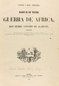 1859. (COLONIZACION AFRICA). ALARCON, PEDRO ANTONIO DE: DIARIO DE UN TESTIGO DE LA GUERRA DE AFRICA. Madrid, Gaspar y Roig editores, 1859. Folio menor. 317 p., 1 h. a doble columna. Ilustr. con 1 retrato y proliferación de ilustraciones en texto...