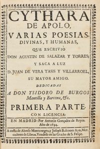 1694. (LITERATURA). SALAZAR Y TORRES, AGUSTIN: CYTHARA DE APOLO, Varias poesias, divinas, y humanas, que escrivió Don Agvstin de Salazar y Torres, y saca a la luz D. Juan de Vera Tasis y Vilarroel, su mayor amigo. Dedicado a Ysidro de Burgos,...