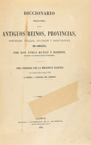 1858. (BIBLIOGRAFIA). MUÑOZ Y ROMERO, TOMAS: DICCIONARIO BIBLIOGRAFICO-HISTORICO DE LOS ANTIGUOS REINOS, PROVINCIAS, CIUDADES, VILLAS, IGLESIAS Y SANTUARIOS DE ESPAÑA. Madrid: Imp. de Rivadeneyra, 1858. 4º menor. 329 p. Texto a dos columnas. Enc....