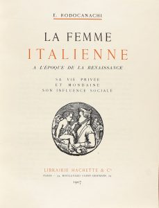 1907. (ENCUADERNACION). RODOCANACHI, E.: LA FEMME ITALIENNE A L´EPOQUE DE LA RENAISSANCE. Sa vie privée et mondaine son influence sociale. Paris: Librairie Hachette, 1907. Folio. 3 h. + 435 p., 2 h. 77 láminas. Edición numerada y limitada a 15...