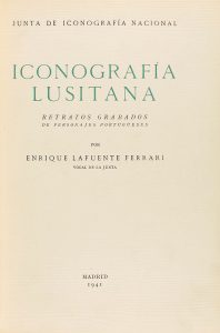 1941. (PORTUGAL). LAFUENTE FERRARI, ENRIQUE: ICONOGRAFIA LUSITANA. RETRATOS GRABADOS DE PERSONAJES PORTUGUESES. Madrid: Imp. Blass, 1941. 4º menor. 169 p., 1 h., LX láms. Enc. en media piel, puntas, nervios. Lomo algo rozado.