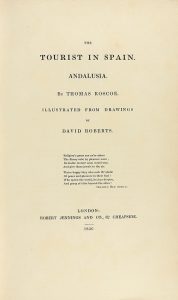 1836. (VIAJES). ROSCOE, THOMAS: THE TOURIST IN SPAIN. ANDALUSIA. Ilustr. from Drawings by David Roberts. London: Robert Jennings adn Co., 1836. 4º menor. XII + 280 p., 2 h. Frontis, portada y 19 láms. grabadas al acero, coloreadas. Enc. en plena...