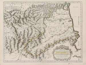 1660. (ROUSSILLON). SANSON: SARDONES. EVESCHE DE ELNE OU DE PERPIGNAN. COMTE DE ROUSSILLON ou sont les Veguerie de Perpignan, souvegerie de Vall-Spir, veguerie de Villefranque de Conflent, souveguerie de Capsir. Mapa grabado al cobre, 40x52 cm....