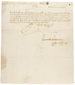 1506. (FIRMA REAL-FERNANDO EL CATOLICO). MANDATO DEL REY A FERNAN DUQUE DE ESTRADA PARA QUE HAGA EL REGISTRO DE LAS PROVISIONES Y CEDULAS REALES. Manuscrito sobre papel, 23 x 20 cm. Firma mansucrita ´Yo el Rey´. Dado el 19 de junio de 1506.