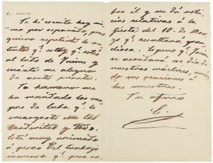 SUSTITUYO A M. CERRALBO CUANDO ESTE DEJO DE SER JEFE DEL CARLISMO. Este conjunto epistolario pertenecía en última instancia al hermano del Marqués de Cerralbo, dos veces grande de España y jefe del Partido Crlista de España y del que también hay alguna carta. Detallamos, a continuación y a modo de sumario el contenido: 1: Cartas con 7 autógrafos, algunas con respuesta, del Conde de Melgar al Conde de Casasola (Conde de Melgar fué secretario personal del Rey en el exilio durante 26 años); 2: 27 Cartas que le escribe J. Vázquez de Mella (senador tradicionalista, ideólogo de éste partido y, posteriormente exiliado), la mayoría de estas cartas fueron escritas desde el exilio; 3: 7 cartas de Matías Barrios Mier; 4: conjunto de cartas de políticos de la época como el jefe de los requetés, jefe de la Junta Suprema, jefes policías generales como Joaquín Saconel, ayudante de Carlos VII y Rodríguez Manzano, tesorero en España; 5: Cartas autógrafas del rey y dos de su secretario; 6: El Marqués de Cerralbo escribe a su hermano, conde de Casasola diciéndole que ha sido convocado a ir con el hijo del rei, Jaime de Borbón, en viaje oficial a Rusia, invitados por el Zar. El Rey escogió a al Marqués de Cerralbo por ser éste hombre culto, recto y de gran mundología. En este aparetado se incluyen la invitación nominativa para un baile oficial y el programa del mismo; 7: borradores de discursos: de Cerralbo en el Círculo Tadicionalista de Madrid con asistencia de su presidente, el General Arguelles y discurso de Vazquez de Mella; 8: borrador manuscrito de Cassasola del estatuto del Círculo Tradicionalista de Madrid-Casino; 9: 3 guías diferentes para desencriptar cartas y 10 cartas encripadas; 10: conjunto epistolar de personajes relevantes como la del decano de los abogados de Vitoria pidiendo que se conserven las audiencias provinciales, o la de agradecimiento por parte de los abogados y encausados carlistas por su mediación en el caso (firmas de los presos y los abogados); carta de Casasola al Congreso de los Diputados de parte de los diputados carlistas; 11: varias cartas con carta con firma autógrafa de Jaime, alguna enviada desde el Palacio de Loredan en Venecia,..; 12: 4 cartas de los requetés de Barcelona; 13: listado de los carlistas que se presentaban a las elecciones por cada Junta de Provincia más el certificado como diputado por Alava de Casasola; 14: dos cartas de representantes de los diferentes partidos tradicionalistas con el fin de hacer una coalición para las elecciones; 15: material vario: pamfletos tradicionalistas, obligaciones del círculo Tradicionalista firmados por Serralbo, ...; 16: manuscritos de los preparativos para el duelo entre dos diputados (uno de ellos carlista), finalmente no hubo lance, se incluyen cartas de los padrinos de los dos bandos; 17: el Marqués de Veragua y el Marqués de Siruela se reúnen con Casasola para no robarse votos (carta con sobre). Toda la documentación está en perfecto estado y cuidadosamente clasificada.