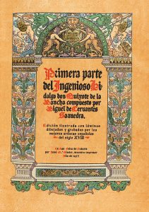 con láminas dibujadas y grabadas por los mejores artistas españoles del s. XVIII. Impreso a todo color con proliferacón de dorados. Enc. plena piel repujada por el artesano Carlos Roca Casanovas. Ruedas en los cantos y en las cejas. Presentado en un estuche de corcho. Bella y original edición de esta obra maestra de la literatura española.