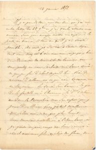 janvier 1853. Il n’a rien à cacher : « Après tout vous avez été 6 ans avec moi »… Nouvelles de la vie de la famille, dont la plus grande partie est à Claremont. « Mon Douar est installé à Orleanshouse, où je pioche un peu, range mes livres, monte à cheval avec mon fils, et élève des fleurs, des poules et des porcs. Nous vivons tranquilles, sans conspirer et sans nous décourager ». Ils auront bientôt fini la vente des biens qu’on leur a laissés, « bien décidés à ne communiquer avec nos spoliateurs que par la voie des tribunaux, lorsque la justice sera débaillonnée »… Le récit de la prise de Laghouat l’a remué : « je n’entends jamais parler de battre la charge sans que le cœur ne me tape bien fort. J’ai été bien affligé des pertes […] et notamment de la mort de mes deux bons amis, Bouscaren et Bessières, c’étaient de vaillants soldats et de nobles caractères »… Il évoque aussi ses chevaux, dont Baba Ali, resté à Chantilly… Twickenham 27 juin 1858, lui envoyant sa brochure sur Alésia : « j’ai raconté et discuté un siège ; j’aurais bien mieux aimé en conduire et surtout en terminer un comme vous »…