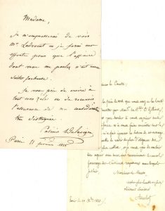 1820-1834, dont une avec poème), Jean-François Cailhava (2), Jean-François Collin d’Harleville (2, 1796-1804), Casimir Delavigne (6, 1825-1835, une à Talma), Louis-Emmanuel Dupaty (3, 1836-1837), Alexandre Duval (3, 1811-1832), Simonis Empis (6), Charles-Guillaume Étienne (5, 1815-1837, à S. Gail, Ch. Nodier…), Joseph-Étienne de Jouy (8, 1808-1839), Jean-Louis Laya (5, 1798-1827, une à Grimod La Reynière), Pierre Lebrun (9, 1833-1868), Gabriel Legouvé (2, une à Ducis), Népomucène Lemercier (10, 1815-1838, à Ducis, Bocage, le baron Taylor, sa femme…), Louis-Benoît Picard (11, 1792-1828, à Vieillard, Barbié du Bocage, Barba…), François Ponsard (4), Jean-François Roger (27, 1808-1829, à Picard, Royer-Collard, Pixerécourt, Guiraud, Vial…), Ludovic Vitet (2).