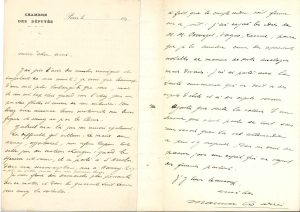 « sont plus boulangistes que vous, mais ils vous ont trop chéri quand vous l’étiez pour ne pas être flattés et curieux de vous entendre. Vous lirez avec aisance leurs sentiments sur leurs figures et saurez ne pas les blesser »… Paris 189-, à George Bonnamour. Il fait peu de cas de l’article signalé, mais donne des instructions pour que Bonnamour s’occupe d’une note dans la Revue indépendante, déjà « publiée par Saint-Cère dans la Vie parisienne sur mon confrère Bodinier. La méchanceté, c’est de vouloir me brouiller avec Bourget et Vogüé »… 2 juin [1906], à Abel Bonnard, éloge des Familiers : « des inventions divines, de l’imagination dans le style »… 21 janvier 1907, à un confrère : « C’est vrai que votre portrait est charmant »… 9 juin 1913, à Albert Messein : renvoi d’épreuves à son éditeur, avec le souhait de préciser que certain texte est un discours à la Chambre du 25 novembre 1912… 15 novembre 1915, [à Edmond Groussau] : respects et amitiés à son collègue « que je crois être votre père », remerciant de communications « qui s’accordent avec tout ce que j’ai su de furieuses actions des Allemands contre les prêtres et les églises de Lorraine »… 7 juin 1919, sur un de ses livres qu’il n’a pu faire admirer par personne : « Moi, il m’enchante. De plus je me figure qu’on aurait dû lire et retenir les dernières pages de ma préface. Mais va te faire fiche ! On n’a rien lu, rien retenu »… Nice 2 avril, à Paul Hervieu, disant son admiration pour son livre dans lequel il goûte fortement « la sincérité de l’émotion, d’un accent poignant, le pathétique d’un être frémissant […] votre avant-dernier livre avait des pages de loyauté dans la tendresse, de complicité dans la passion que j’ai senties comme des vérités sublimes »… Etc. On joint 1 L.S. avec post-scriptum autographe (1906) ; plus des portraits et coupures de presse.
