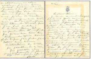 « Maître chéri. Je deviens vraiment désespérée. Le Conseil, après avoir motivé le non Sociétariat, le non Professorat, a motivé la crainte d’un précédent créé. Vous vous souvenez de cela ; mais maintenant, la politique, s’en mêlant, je sers d’enclume », et on invoque « un point délicat », avec des « lettres anonymes les plus lâches, les plus immondes ».Elle regrette ce débat, et pouvait se passer de la Croix : « mais je ne puis maintenant reparaître devant le public que lavée du soupçon que fait peser sur moi ce veto non motivé du Conseil. Je ne puis m’arrêter, il faut que justice me soit rendue. Ce n’est pas la Croix que je réclame, c’est le motif qui me la refuse. L’Opinion publique est pour moi ; ma vie a toujours [été] claire et loyale ». Elle a vécu toute sa vie de son travail : « j’ai élevé les miens avec ce que je gagnais »… Elle supplie « Maître Chéri » d’intervenir auprès de Fallières « et de lui dire ce que vous savez de moi. Je suis prête à répondre et à anéantir toute accusation mais je ne puis continuer à vivre ainsi. Je sens que la vie de mon fils va encore être en jeu, et cela me rend folle de douleur. Je n’ai pas mérité l’affront qu’on me fait aujourd’hui. Je ne peux laisser peser sur mes deux petites filles une honte que je ne mérite pas. […] J’irai crier partout, je demanderai justice. Je ferai ouvrir des enquêtes sur ma vie… Enfin croyez-vous qu’on m’accuse d’espionnage ; oui moi ; moi… Cela devient fou mais tellement odieux que j’en suis malade ! Maître chéri cela ne peut être. Il ne faut pas qu’on me tue si lâchement après avoir fait ce que j’ai fait pour rester moi-même »…