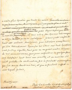 « Avant que de vous renvoyer le catalogue des prises de villes et des batailles arrivées sous le règne de sa Majesté, je l’ay non seulement examiné en mon particulier avec le plus de soin qu’il ma esté possible, mais mesmes j’en ay pris l’avis de quelques personnes fort informées de nostre histoire, et sur tous, des Messieurs qui composent nostre Assemblée […] J’ay trouvé que le nombre de 53 ou 54 tableaux que vous avez desirez, envelope tout ce qui est de plus remarquable depuis l’avenement de Sa Mté a la Couronne. Car en 1648 que les troubles de la France commencerent jusqu’en 1654, il sest fait peu de choses hors du Royaume, et je nay pas creu qu’on deust marquer les succez des armes du Roy dans ses propres Estats, pour ne point perpetuer la memoire de nos désordres. Depuis 1654 jusques en 58 que l’on commença a parler de la Paix, il sest fait veritablement plusieurs actions considerables, mais il y a eu beaucoup de reprises de villes que les ennemis nous avoient enlevées devant nos troubles », et on ne peut mettre deux fois les tableaux de ces places « dans une galerie ou la diversité des peintures fait le principal ornement »… Etc.
