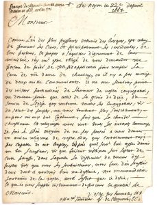 Très rare lettre de l’évêque de Noyon relative aux difficultés rencontrées pour pourvoir les cures de bons pasteurs.