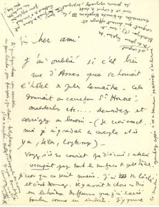 trouvait l’hôtel de Jules Lemaître et donne des précisions et des corrections, il évoque « un souvenir des arènes. C’est le rire et le caquet de la jeune Eugénie de Montijo (?) rire et caquet qui durent effrayer er ensorceler le timide Napoléon III, le rire et le caquet de toutes les jeunes espagnoles, trépignant avec leurs pieds de bouc et battant de l’éventail pour applaudir un matador qui tue ». Envoi de dessins : « 1. Reynaldo en grand 2. Lemaître 3. Ernesta » ; il demande de surveiller l’orthographe et la ponctuation. Il donne les têtes de chapitre : « Les dames-poètes – Simone – Le grand Maulnes – La comtesse de Noailles », etc. Il s’insurge : « On n’a pas le droit de mutiler un texte et la suite logique d’une pensée. C’est un crime des lettres. Il fallait m’écrire, me téléphoner, me demander conseil. “Un merveilleux vertige verbal” je ne peux écrire cela. Pourquoi se substituer à moi ? ». Il annonce qu’il donnera son prochain article, mais qu’il n’écrira pas la suite…