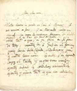 mais le travail me retrouve ici et m’accable »… – Il a travaillé comme un cheval : « voilà tout ce que j’ai pu faire en si peu de tems ; montrez-le à Jussieu et Fourcroy, prenez l’aveu de Lacepède, et Delamarre pour y mettre leurs noms. Les autres j’en réponds. Coupez et taillez-y […]. Ajoutez au bout les conditions mercantiles, ajoutez-y même tout ce que nos codirecteurs jugeront à propos. Je crois que les deux ou 3 coups de fouet que j’y donne aux auteurs de l’autre ne vous déplairont pas. Cette entreprise est indigne […], car il n’y a que La Treille de bon, étant aisé à imaginer que Chaptal, et les autres illustres ne sont nommés que pour la frime »… Q’on redouble de zèle ; lui-même a composé presque toute la lettre A, et serait fâché d’avoir perdu son temps, d’autant que « j’ai mis de jolies choses aux articles ame des bêtes, animal, anus, abdomen, et que j’ai fait un grand et beau travail pour l’article Antilope qui n’est pas fini »… Il lui rappelle ses « fonctions excitatoires », et recommande « qu’on ne sache pas dans le monde que j’ai fait ce prospectus »…