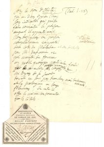 On joint 2 P.S. : certificat d’assiduité à son cours de botanique (1819), et un billet d’entrée au Jardin du Roi.