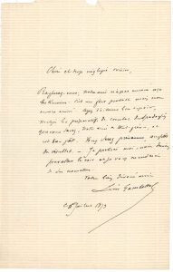 À Mme Scheurer-Kestner. 11 novembre 1870. Réponse à une lettre et un don patriotiques pour aider le gouvernement « à la grande œuvre de la défense nationale et de la délivrance de la Patrie »… 15 janvier 1873. Envoi d’un produit de son pays, « digne d’être apprécié sur un point de Paris où [on] a plutôt le souci des richesses morales »… 5 juillet 1873. Leur ami n’a pas encore reçu les témoins : « malgré les préparatifs de combat du spadassin que vous savez, notre ami a tout prévu, et est bien prêt. Vous serez prévenue, aussitôt du résultat »… 15 juin 1877. Conseils et précautions sont inutiles : « ne croyez donc pas aux Ides, cela n’est mauvais que tous les mille ans et nous avons encore deux siècles de répit »… 21 mars 1878 : « Je ne croirais jamais que vous avez pu douter de la parole du plus sûr de vos amis »… 28 mars 1878. « Vous allez présider à une belle fête de famille, et sceller une alliance dont il m’est permis, sans réserve, de prédire la belle harmonie, la parfaite union fondée sur les grâces, les mérites de ces deux beaux enfants »… 29 mars 1878. « La vie est ainsi faite que les larmes suivent de près la joie et que les plus beaux projets de fête sont traversés par les plus cruelles douleurs. Je viens de perdre ma tante que j’aimais par-dessus tout au monde »…