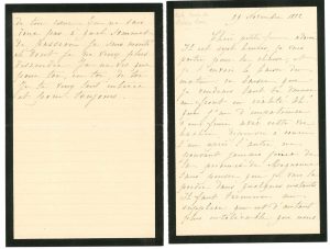 On joint la copie d’une lettre de Scheurer-Kestner à elle adressée, 1896, et une coupure de presse.