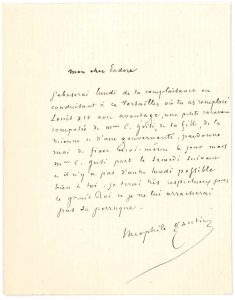 Théophile GAUTIER (1811-1872). L.A.S., à Eudore Soulié (conservateur du château de Versailles) ; 1 page in-12. « J’abuserai lundi de ta complaisance en conduisant à ce Versailles où tu as remplacé Louis XIV avec avantage, une petite...