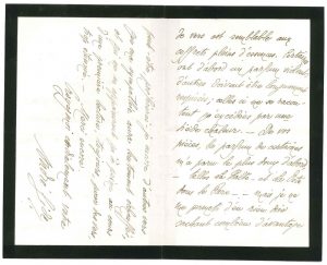 d’avoir été lu sous des palmes. – Un volume de vers est semblable aux coffrets pleins d’essences. Certaines ont d’abord un parfum violent ; d’autres doivent être longuement respirées ; celles-ci ne se racontent qu’excédées par une tiède chaleur. – De vos pièces, le parfum de certaines m’a paru le plus doux d’abord, – telles La Halte – et La Fête dans le Parc– mais je ne me permets d’en rien dire sachant combien d’avantage peut-être, préférerai-je encore d’autres vers que ma sympathie aura lentement échauffés, et qui ne m’apparurent qu’à peine au cours d’une première lecture, toujours, pour des vers, trop étonnée »…