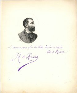 Portrait par Robert Kastor (médaillon à l’encre de Chine) de José Maria de Heredia, qui a noté au-dessous ce vers de Pierre de Ronsard : « L’amour sans plus du verd laurier m’agrée »…