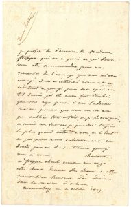 J’ai été aussi fort touchée que vous ayez pensé à me l’adresser. C’est me prouver que vous ne m’avez pas oubliée tout à fait, et je le craignois, ce seroit un tort car je prendrai toujours le plus grand intérêt à vous et à tout ce qui peut vous intéresser »… Elle termine en lui recommandant Mme Freppa, qui souhaiterait donner des cours de chant dans la maison d’Orléans.