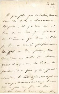 Victor HUGO. [AF] L.A.S., 21 août [1839] ; 1 page in-8 (petites fentes dans la marge sup.). Encouragements à un jeune poète. « Il y a plus que du talent, Monsieur, dans vos nobles et charmantes strophes, il y a du cœur. Ce sont de ces vers qui...